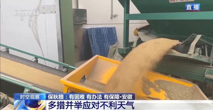 面对持续阴雨天气对于秋粮收获的影响,安徽一方面加强各地收割机的组织调度,抓住降水间歇期开展集中突击收割,同时投入753个农机应急作业队应急抢收。目前,安徽省秋粮收获进度超过75%。另一方面安徽引导各类烘干企业和作业点全面启动24小时粮食烘干作业,全省2万台烘干机满负荷投入使用,日烘干能力超过70万吨,能够基本满足需求。