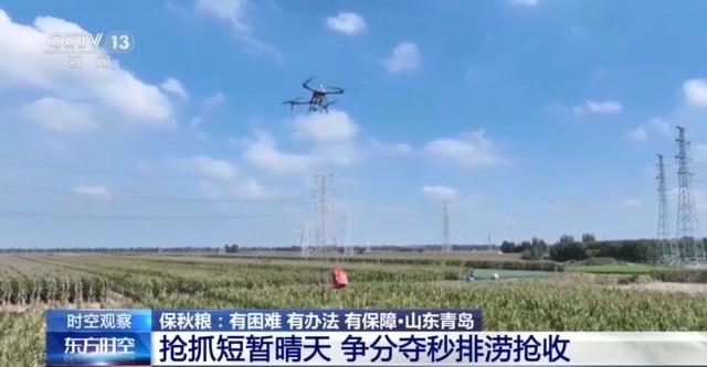 在青岛平度市新河镇,当地农户请来无人机团队协助抢收玉米。目前,平度市植保无人机总量达到1600多架,在当前连阴雨导致地块水分饱和、农用车辆无法下地的情况下,利用无人机吊装农作物,大大提高了秋收秋种作业效率。截至目前,山东青岛共投入195台烘干机资源,日烘干能力可达2.5万吨。全市秋粮应收面积382.5万亩,已收获204.95万亩。