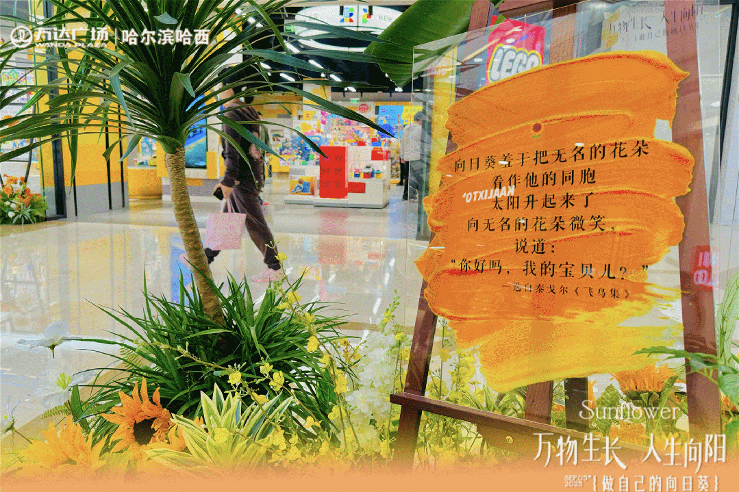 以“万物生长・人生向阳——做自己的向日葵”为主题,10家广场同步落地向日葵主题美陈,打造向日葵花海秀场,搭配花田音乐会,成为市民治愈系打卡地;更联动50余家奶茶品牌推出限量杯套,让消费者成为行走的传播载体,抖音话题#做自己的向日葵#阅读量破1900万,登上同城热搜第一,获哈尔滨文旅官媒报道,实现从用户自发传播到官方背书的流量升级。