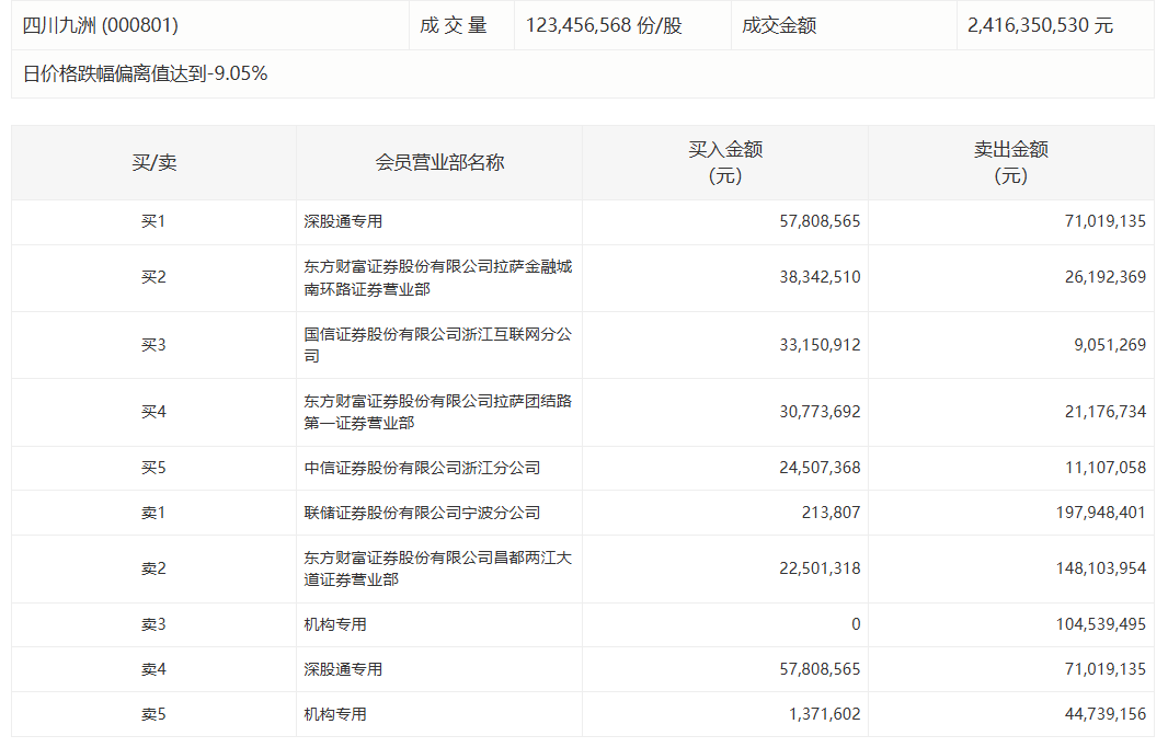 四川九洲今日跌停,二机构净卖出1.48亿元四川九洲今日跌停,二机构净卖出1.48亿元