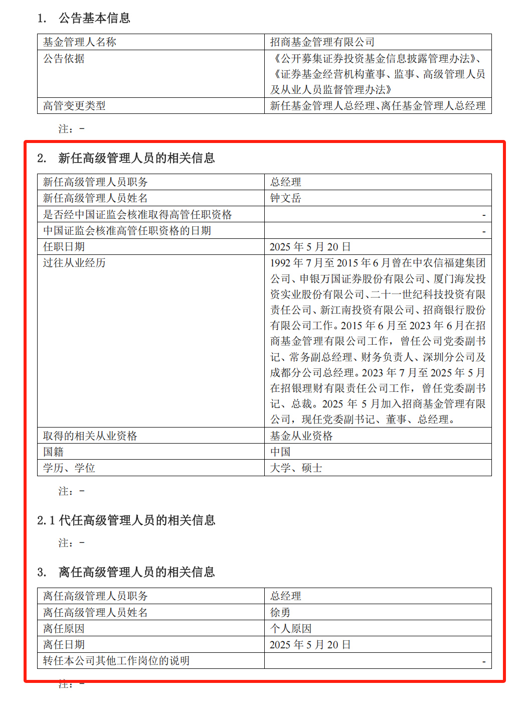 5月19日晚,招商基金发布一则高级管理人员变更公告,引发市场关注。